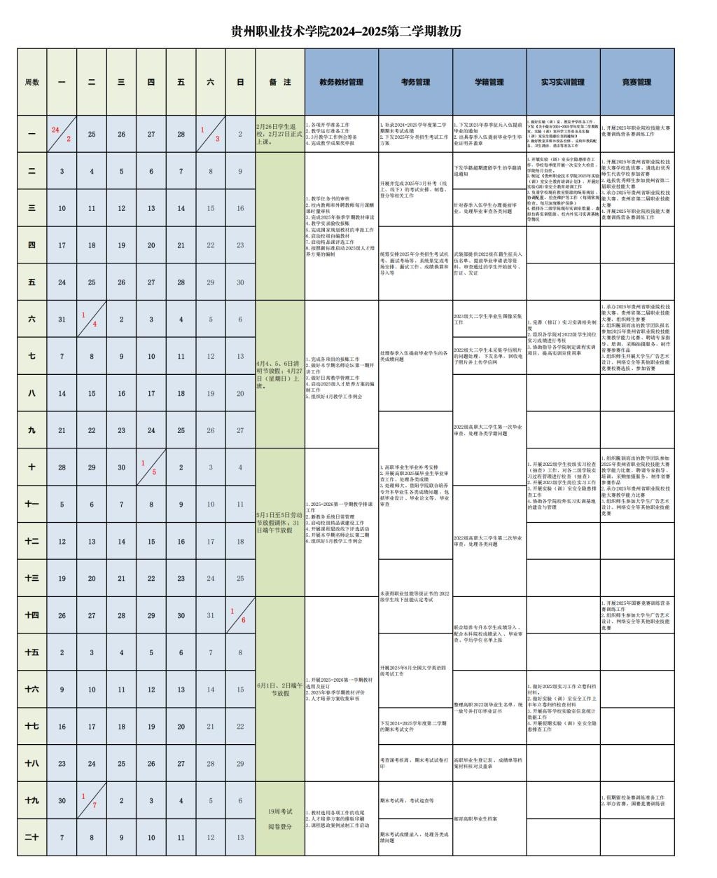贵州职业技术学院2024-2025学年第二学期教学日历
