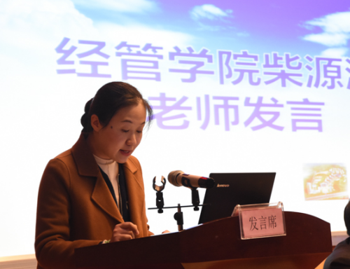 李勤副校长从为什么建?怎么建?建什么?三个方面向大家介绍了优质校的建设背景,解读了教育部、教育厅相关文件精神,并着重介绍了我校的优质校建设方案。让与会人员进一步解了优质校的建设内容、建设进度和建设成果,让大家充分感受到了重点参与建设工作人员的辛勤与付出。根据会议安排建筑工程学院院长胡群、信息工程学院院长王道乾和经济管理学院副教授柴源源代表教师分别做了表态发言。