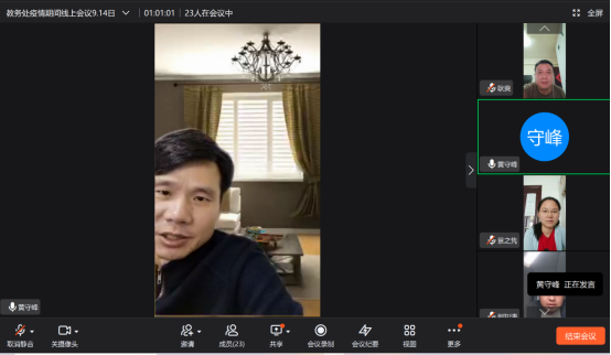 为切实做好我校疫情防控工作,确保学校正常的教育教学秩序,做到防疫教学两不误。9月14日中午,教务处召开疫情期间线上工作会议,教务处全体人员参会。