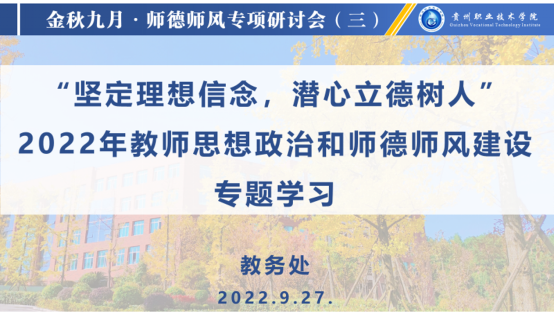 9月12日下午,教务处全体教职工通过线上会议的形式开展了第二场师德师风专项研讨会,会议深入学习领会了习近平总书记关于教育的重要论述。习近平总书记高度关注职业教育发展,对职业教育工作作出重要指示:“在全面建设社会主义现代化国家新征程中,职业教育前途广阔、大有可为。”新的学期里,教务处全体教职工将继续以饱满的精神投入到新一轮教学管理工作中,始终坚守教学服务工作初心,保障学校教学管理工作高质量发展。针对学校疫情防控工作,会上还学习了《教育部办公厅国家疾控局综合司关于印发高等学校、中小学校和托幼机构新冠肺炎疫情防控技术方案(第六版)的通知》。
