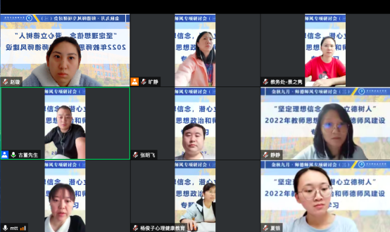 为进一步开展师德师风建设,贯彻习近平总书记关于教育的重要论述和系列指示、批示精神的重要举措,9月27日教务处召开“坚定理想信念,潜心立德树人”专题学习。教务处全体教职工通过线上会议的方式参加了此次学习。