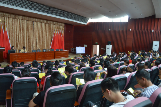 2017年国家司法考试贵州职业技术学院考点监考人员培训会,于2017年9月14日13点在行政楼九楼会议室举行,会议由教务处马婷婷副处长主持,贵阳市司法局俞梅副处长、教务处考务科人员、监考人员共130人参加了本次培训会议。