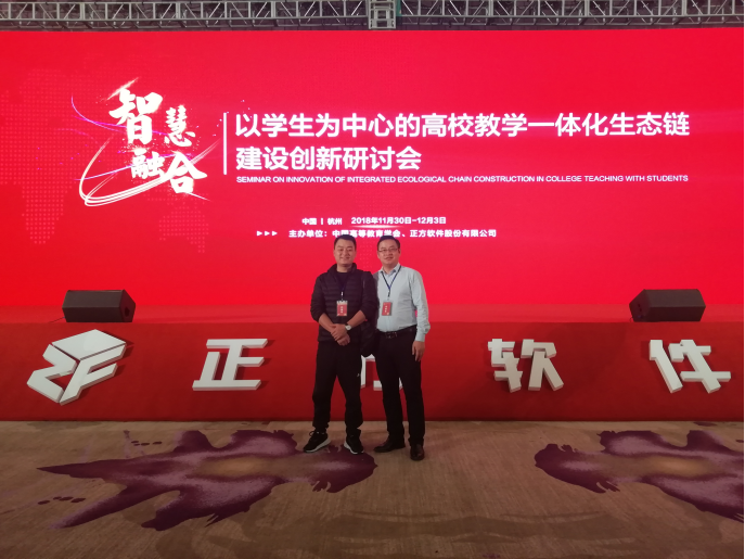 2018年12月1日至3日,由中国高等教育学会和正方软件股份有限公司共同主办的“以学生为中心的高校教学一体化生态链建设创新研讨会”在杭州召开。我校教务处古锦波、杨茂松老师参加了此次研讨会。据悉,大会共有来自450所高校的1500多名代表参加。
