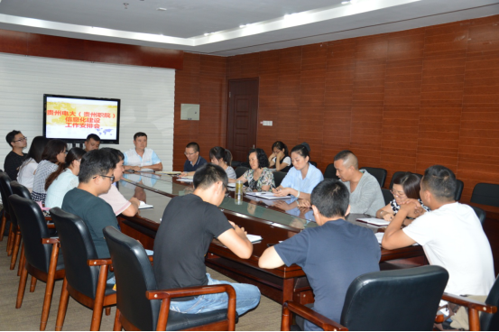 为更好地推动职业教育与开放教育的融通发展,加强新常态下教学管理研究,我校党委行政高度重视教务管理工作效率有效提升。今年四月,按照校党委要求,贵州电大(贵州职院)教务处发布了信息化建设项目组校内招聘公告,在全省各分校、二级学院(部)的大力支持下,教务处从黔东南电大、贵阳电大、信息学院、商贸学院和远程教学部抽调杨仁伟、喻梅、王正才、唐荣君、付伟宸、李紫薇和郭建强七名同志与教务处相关人员组成系统平台信息化建设项目组。8月30日,信息化建设项目组小组工作正式全面启动。见面会上,赵霖处长首先对对分校和二级学院(部)对教务管理工作的支持和理解表示感动和感谢,同时对来自分校和二级学院(部)的同志表示了热忱的欢迎;在小组成员一一进行自我介绍后,赵霖处长就系统平台信息化建设工作进行了明确的分工部署,并提出了努力、实干、忠诚、担当四个要求,强调规划目标、阶段目标和时间节点;随后,小组成员就工作思路和具体设想积极探讨。