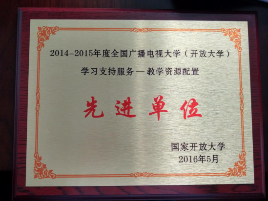 我校荣获2014-2015年度全国广播电视大学(开放大学)学习支持服务——教学资源配置“先进单位”