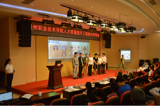 本次校内评审采取校外专家材料初评的方式,推选出材料初评排名靠前的19个项目参加今天的现场答辩评审环节,它们分别是旅游管理骨干专业、物流管理省级骨干专业、现代商品流通专业群、计算机网络技术省级重点专业群、现代商务省级优秀教学团队、计算机网络技术省级优秀教学团队、“黄守峰”省级职教名师、“王道乾”省级职教名师、电子商务省级精品在线开放课程、现代交换技术省级精品在线开放课程、建筑材料省级精品开放课程、建筑·艺术设计省级大师工作室、“民族手工•源”工作室、贵州E云商贸实训基地、建筑工程学院建筑工程技术省级开放实训基地、智能制造创新中心、贵州E云商贸创客孵化基地、商贸学院现代学徒制、软件技术专业现代学徒制。