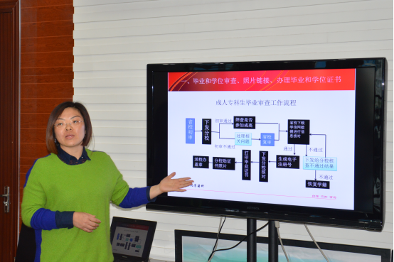 按照我校“十三五”事业发展规划,今后将努力把学校建成理念先进、设施完备、内涵丰富、管理精细、特色鲜明,开放教育和职业教育融合、学历教育和非学历教育互通、国民教育与终身教育并举的一流大学,以及我校《开展“改作风、提效能”为主题的效能提升年活动的实施方案》,教务处结合我校“十三五”事业发展规划,践行“大学习”、“大融通”、“大服务”的工作理念,积极采取专题讲座、业务培训的形式加强能力培训,于2016年4月29日下午,在行政楼6楼会议室继续开展处室业务学习系列讲座,本次讲座题为《学籍管理工作交流汇报》,由原学生处学籍科楚滟科长主讲,教务处全体人员参加了讲座。