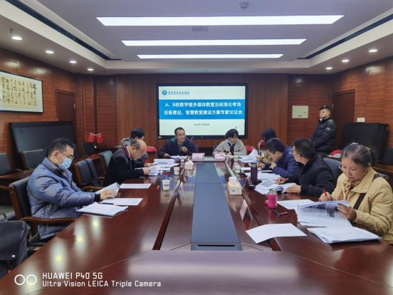 2021年11月26日,教务处组织召开《A栋教学楼多媒体教室及标准化考场设备建设、智慧教室建设方案》和《B栋教学楼多媒体教室及标准化考场设备建设方案》专家论证会。会议邀请了校外七名专家进行论证,杨家兴副处长主持会议,教务处副处长马婷婷、实训与竞赛管理科旷静、网络中心曾凡辉参加会议。