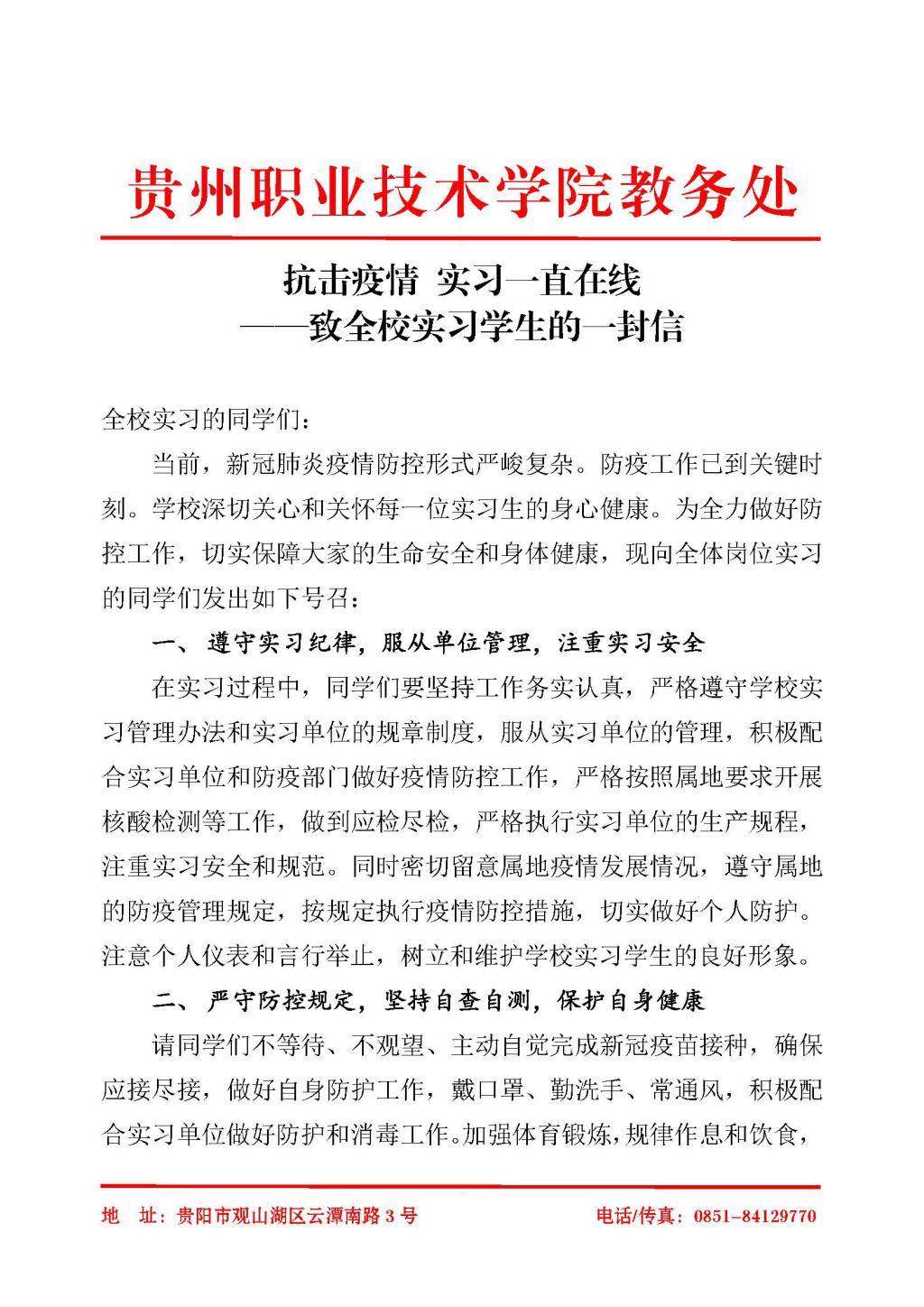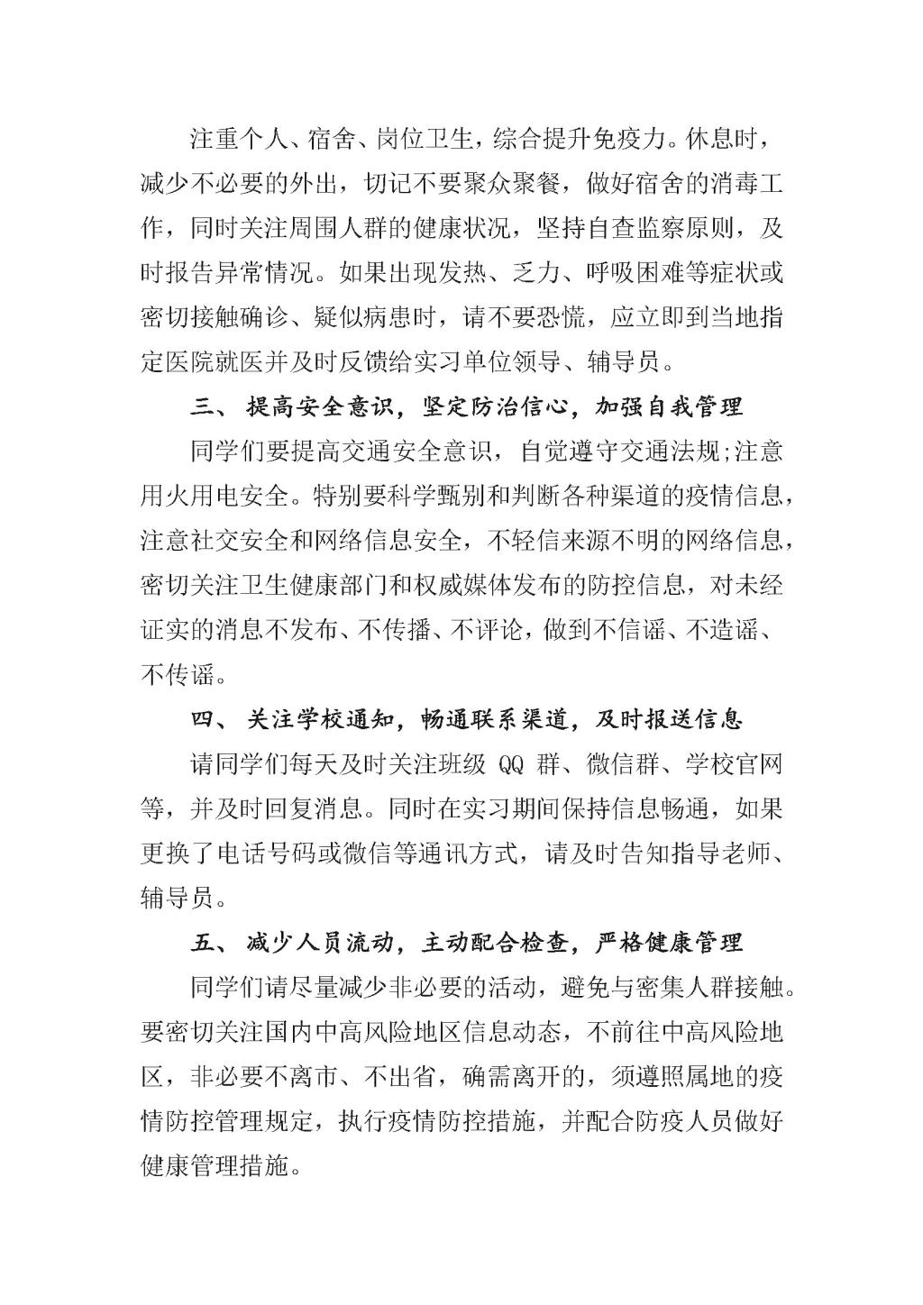 抗击疫情 实习一直在线——致全校实习学生的一封信