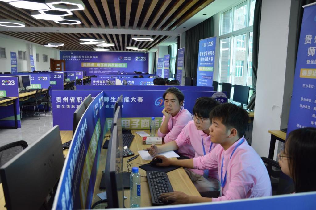 “321,上链接!”在最为紧张、热闹的电子商务技能赛场上,团队选手们要比拼直播营销、视觉营销、网店运营推广等重要工作能力。